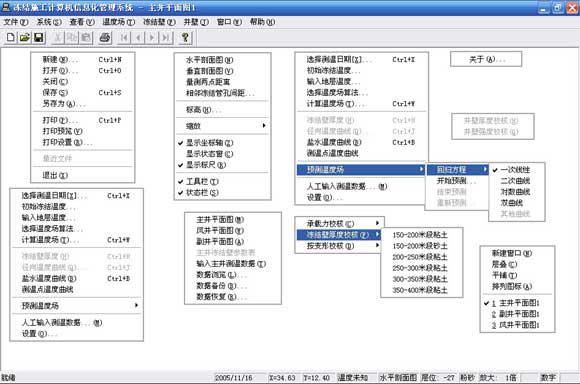 学生根据该系统设计不同冻结参数(地层、冻结布置、盐水流量、井筒直径等),计算机仿真冻结壁温度场发展情况,获得冻结壁强度及掘进参数等。